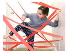 Para la siguiente actividad necesitaremos cinta adhesiva, algún lazo largo, o lana y un pasillo. Y vamos a crear una telaraña donde los miembros de la familia deben pasar, utilizando el equilibrio, debemos esquivar la telaraña, si llegamos a tocar con nuestro cuerpo una parte de la telaraña debemos regresar hasta el principio.